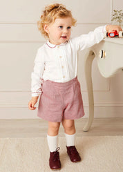 Die Stiefeletten im Oxford-Stil sind ein Grundnahrungsmittel für den Winter. Sie bestehen aus weichem, burgunderrotem Leder und haben einen gepolsterten Spann und einen Riemen mit Schnürsenkeln, der die Schuhe sicher an den Füßen des Babys befestigt. Mit flexibler Gummisohle eignen sie sich perfekt für die ersten Schritte eines Babys oder Kleinkindes.