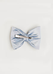 Ein kleines Accessoire mit großem Luxus. Unsere Haarspange „Small Bow“ besteht aus einer sanften Krokodilklemme, die bequem auf dem Kopf sitzt und oben eine kleine blaue Schleife aus Seide hat.