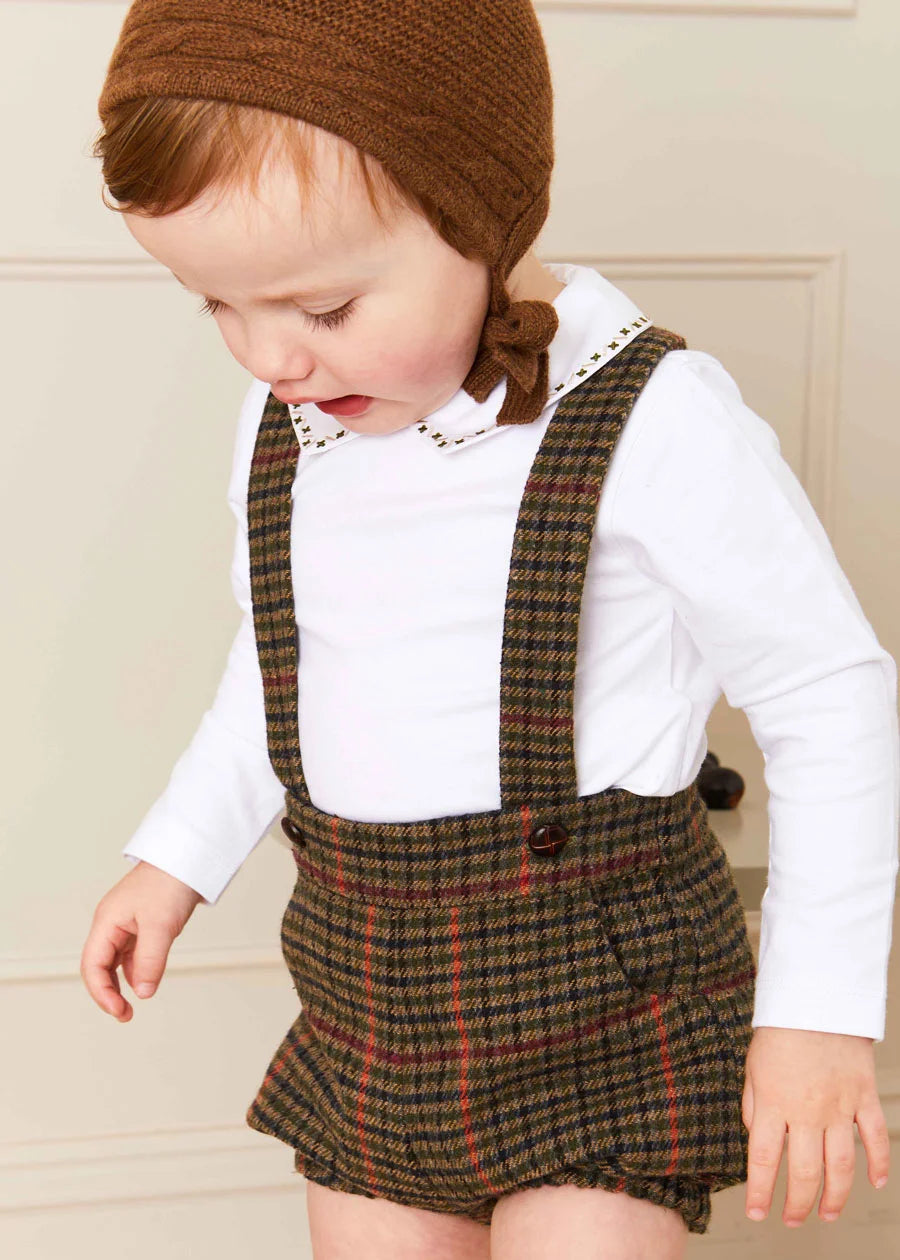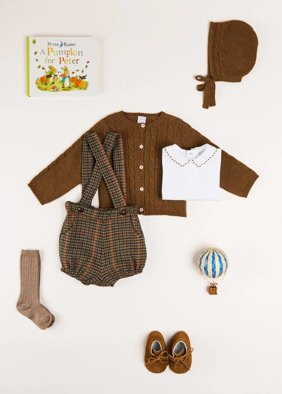 Keep your little one cozy with this charming bonnet featureing intricate cable detailing that is crafted from soft, knitted fabric for warmth and comfort. The rich brown hue adds a touch of classic elegance, making it a versatile accessory for cooler days. Ideal for both everyday wear and special occasions, this bonnet combines timeless design with practical functionality.