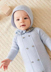 Keep little heads warm with this Baby Bonnet in Blue. It is made fom 100% wool and has intricate openwork detailing along the front. Keep it secure with the ties that sit gently under the head.