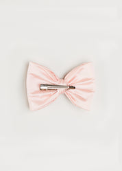 A small accessory that is big in luxury. Our Small Bow hairclip is made from using a gentle crocodile clip that sits comfortable on the head and has a small pink bow, made from silk, on top.