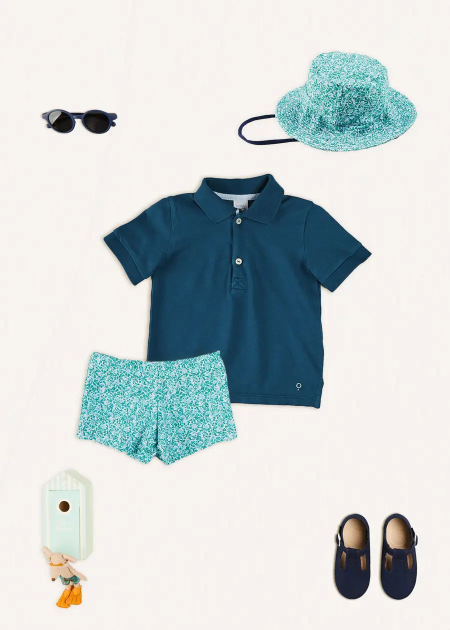 A charming Floral Short Swimsuit in green, featuring the Adelaide floral print, made from 87% PES and 13% EA for comfort and flexibility. These swim shorts are designed for active little adventurers, offering both style and ease for swimming and play. With their playful floral pattern, they’re perfect for days spent in the sun and water, bringing a touch of fun to every splash.