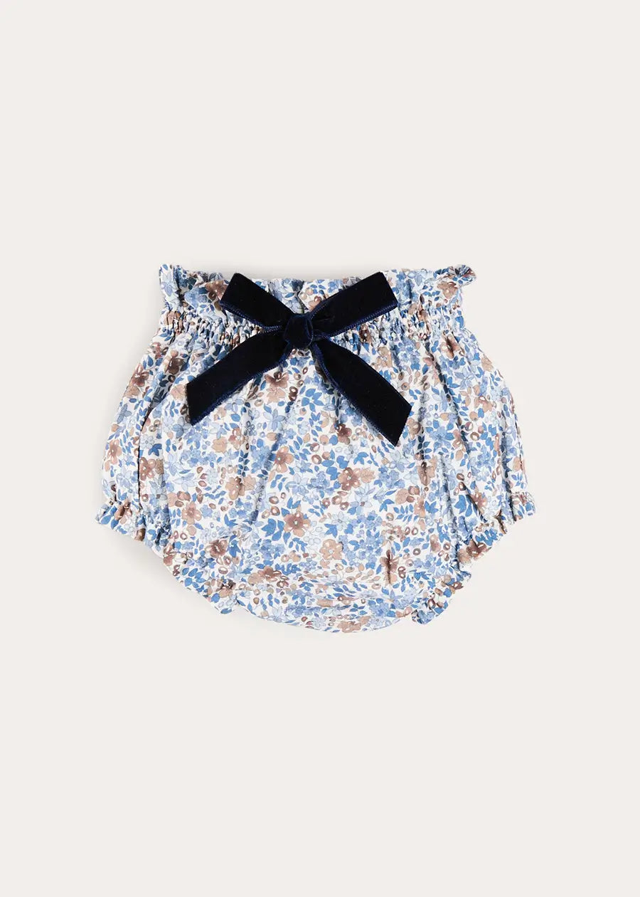The Beatrice Floral Velvet Bow Detail Bloomers in Navy combine comfort and timeless elegance with an elastic waistband and leg cuffs for easy dressing, a gathered frill waistband for added volume, and a luxurious navy velvet bow at the front. Featuring a delicate bespoke floral print, these bloomers are a perfect layering piece for autumn and winter, embodying Pepa London’s classic British charm and refined attention to detail.