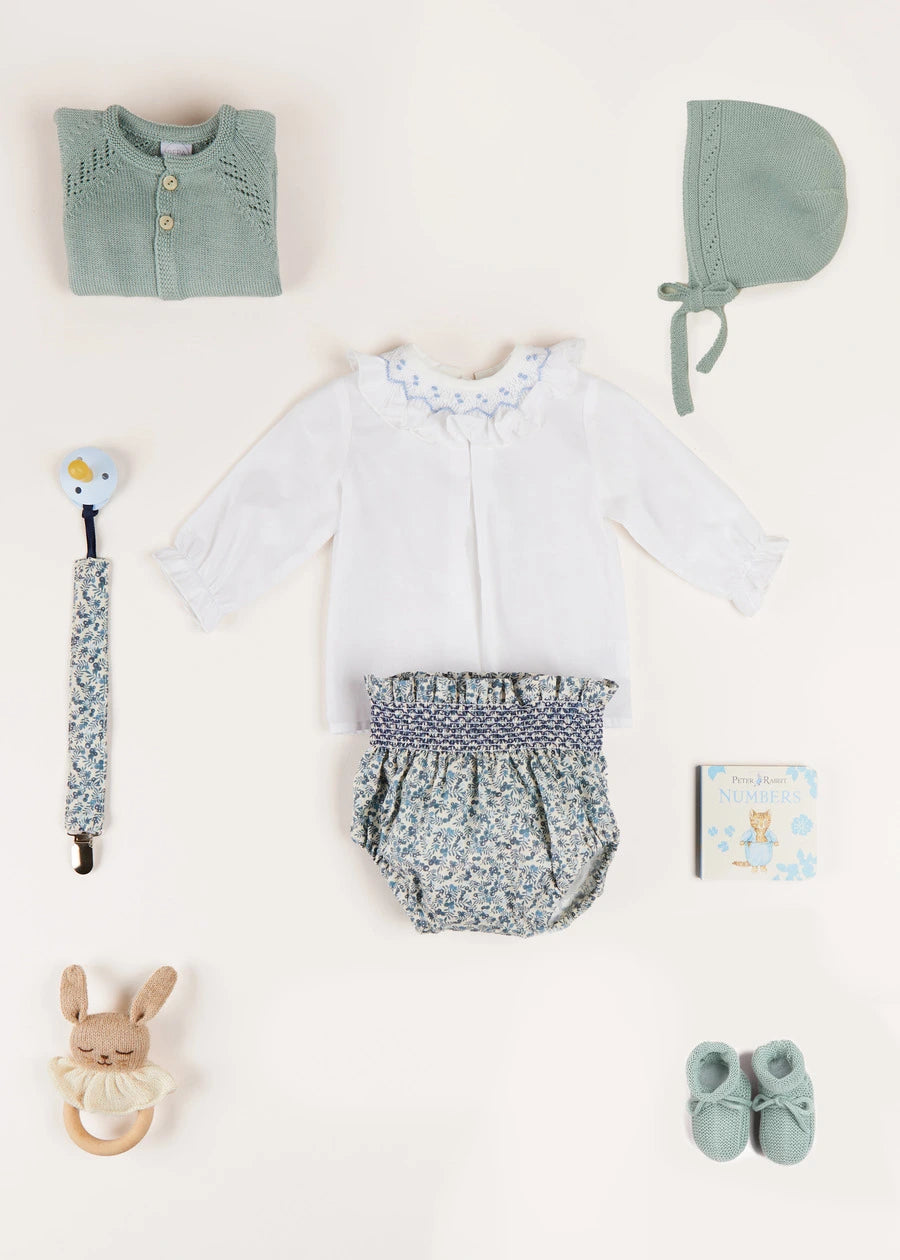 Dalle mani degli artigiani al guardaroba della felicità del tuo bambino, ecco questo delicato cardigan verde. Progettato pensando al comfort del tuo neonato, la sua delicata maglia offre un tocco lenitivo sulla sua pelle delicata, rendendolo uno strato ideale per tenerlo al caldo e comodo durante i suoi primi giorni.