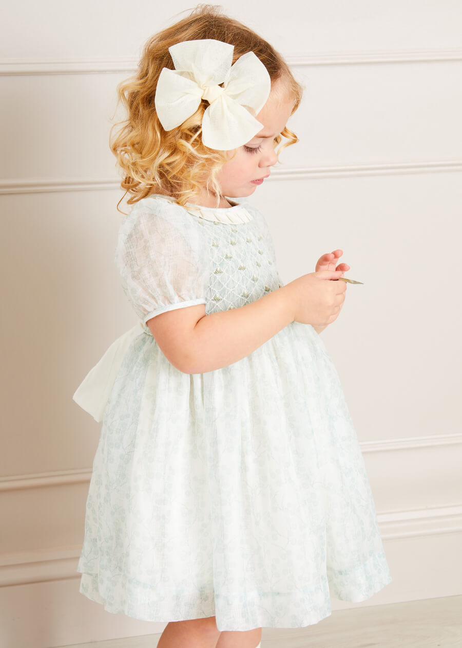 Questo abito da festa floreale sposa il fascino dei motivi floreali con l'eleganza senza tempo dell'artigianato smockato a mano. Realizzato per le occasioni più speciali, questo capo è disegnato in una stampa floreale Constance con il nostro caratteristico smockato a mano, utilizzando tecniche tradizionali.