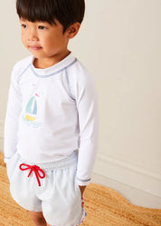 Striped Contrast Trim Swim Shorts in Blue (2-10yrs)