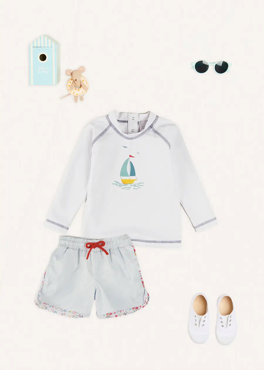These Striped Boy Swim Shorts in Blue are a perfect blend of fun and sustainability. Made from 70% PES SEAQUAL fabric, crafted from recycled ocean plastic, and 30% cotton, they offer a soft and eco-friendly choice for your little one. Featuring bold stripes and contrast trim, these swim shorts provide a comfortable option for beach or pool days. Ideal for active play, they allow freedom of movement while being eco-conscious. A must-have for your child’s summer adventures!